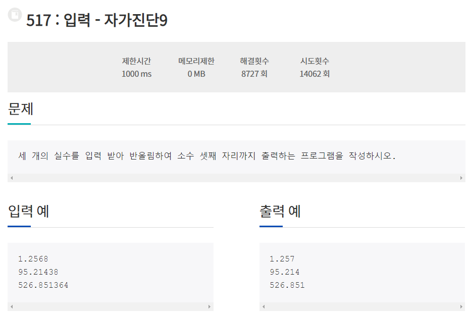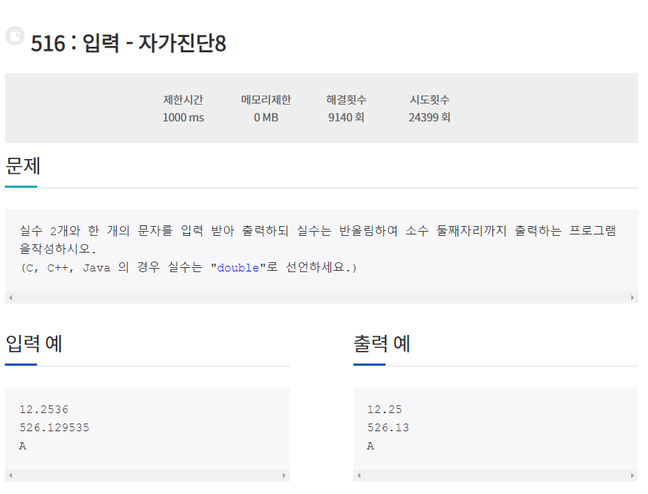 어제 풀어보지못한 입력 문제가 있어서 문제부터 풀고 공부시작하겠습니다.
