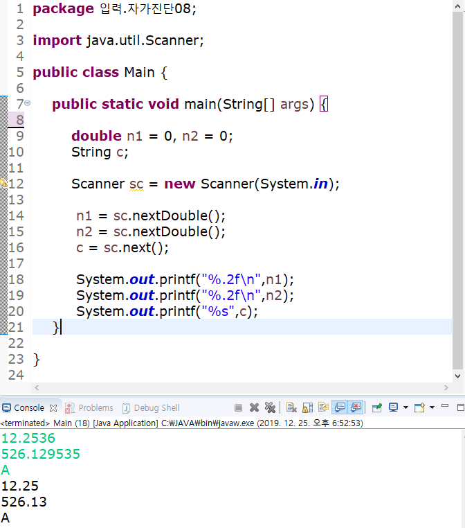변수를 출력하기 위해서는 println을 >> printf로 변환시켜주고,