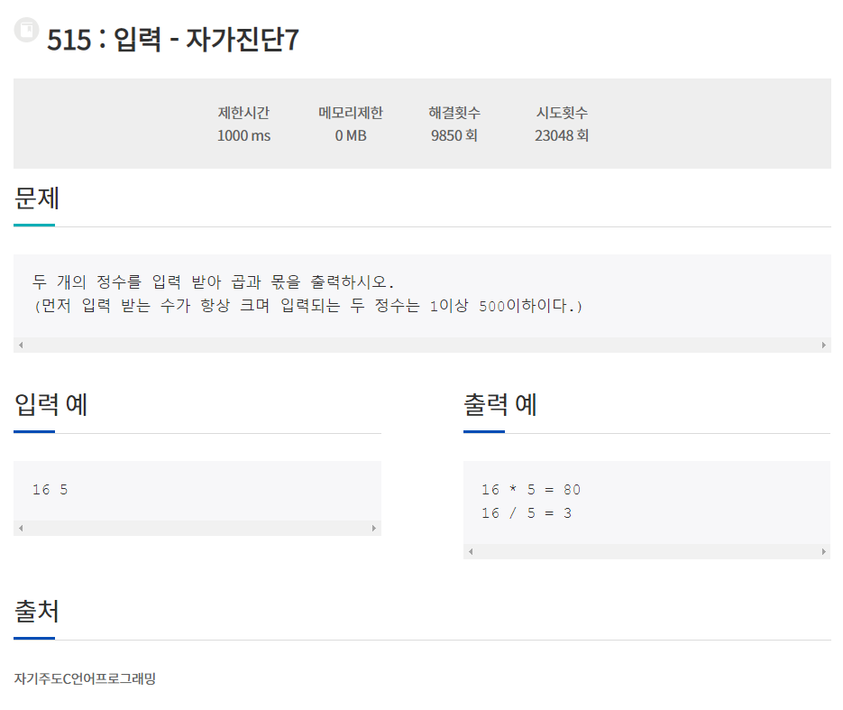 마찬가지로 입력받아 출력을 하는 문제인데,