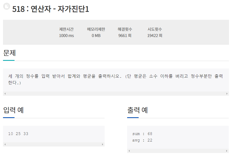 세개의 변수를 주고 합계와 평균을 출력하는 간단한 문제였습니다.
