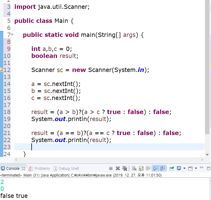 위에서 설명한 바와 같이 boolean을 사용하여 result라는 변수를 생성하고,