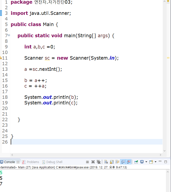 후치 증가는 a의 값이 먼저 올라가고 b의 값이 올라가는 개념입니다. ,,, 아마도(?)