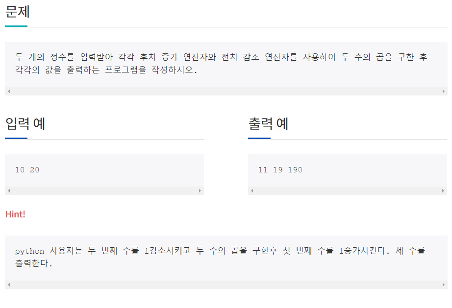 위 문제와 비슷한 유형의 문제로 전치 감소, 후치 증가를 사용하여