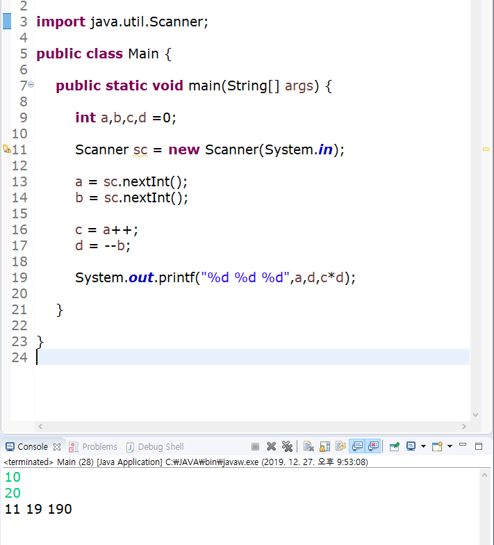 | [Java] 정올기초다지기 선택제어문 자가진단06~09 (0) | 2019.12.30 |