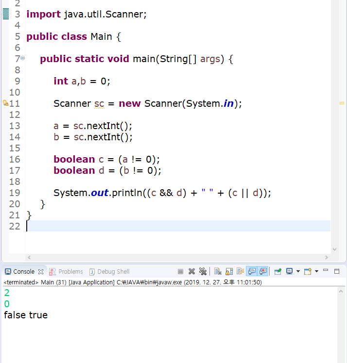 boolean을 사용하여 문제를 풀 수 있다는 사실을 알게 되었습니다.