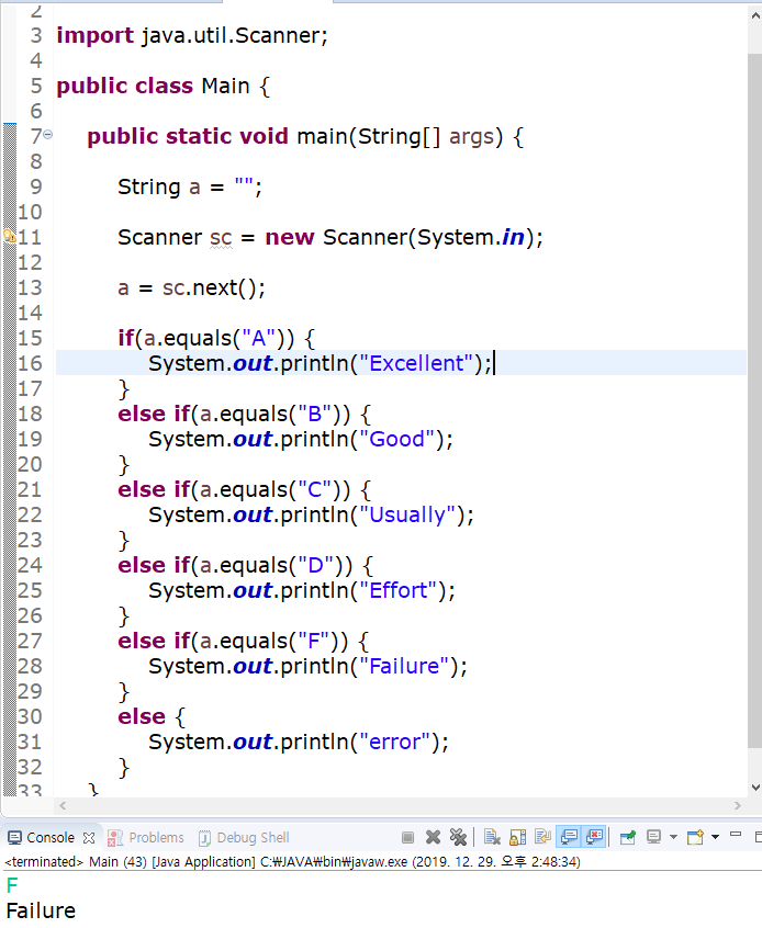 | [Java] 정올기초다지기 선택제어문 형성평가01~05 (0) | 2019.12.31 |