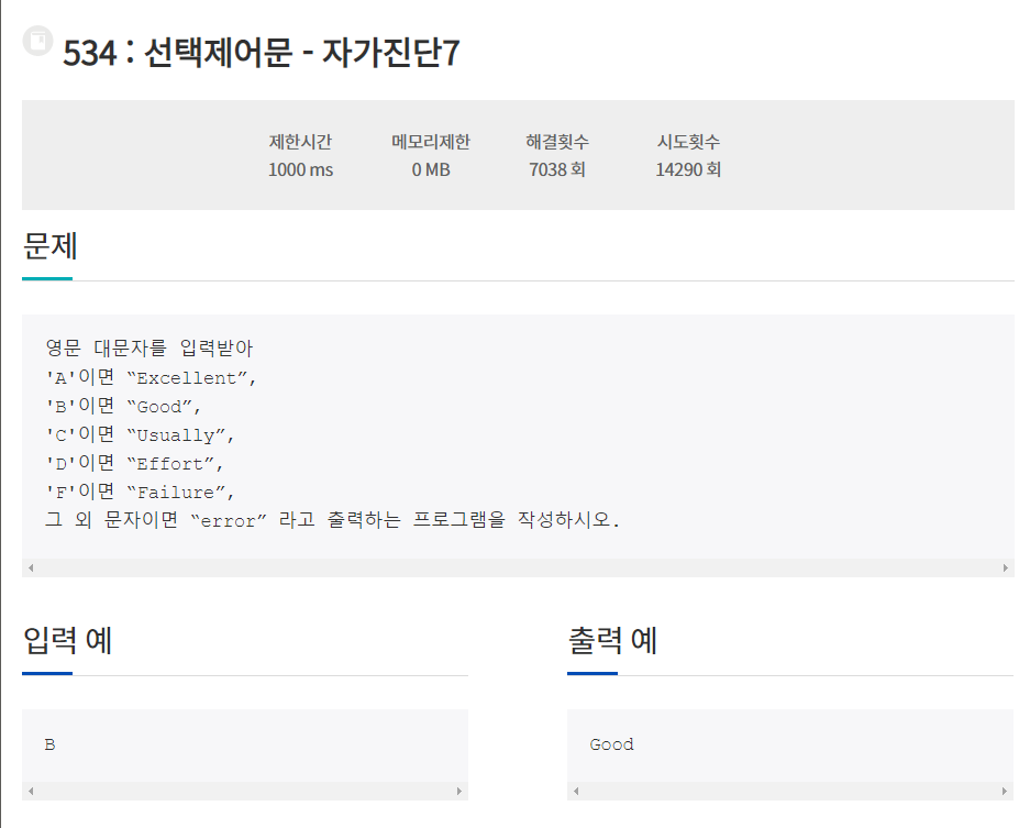 문자를 입력받아 등급단위로 출력을 해주는 문제로 어렵지않게 출이 가능했습니다.