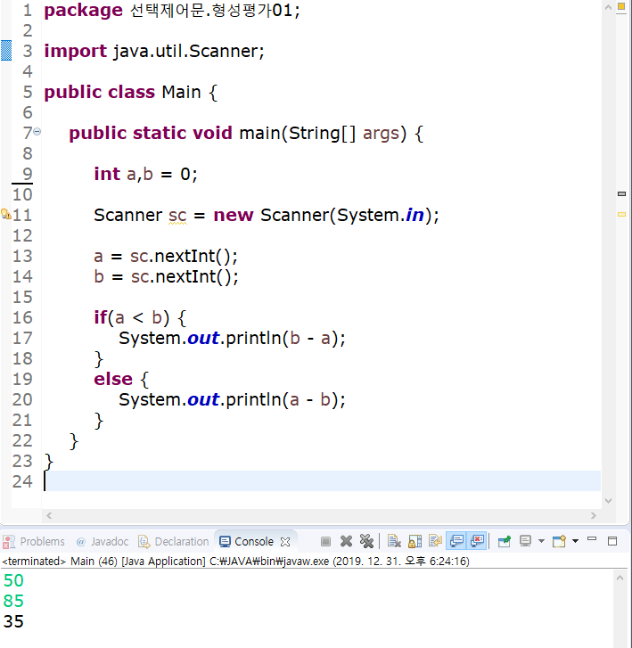 [Java] 정올기초다지기 선택제어문 형성평가01~05
