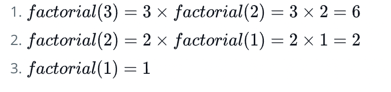Consider the following steps. After the recursive calls from step 1 to 3, results are accumulated from step 3 to 1.