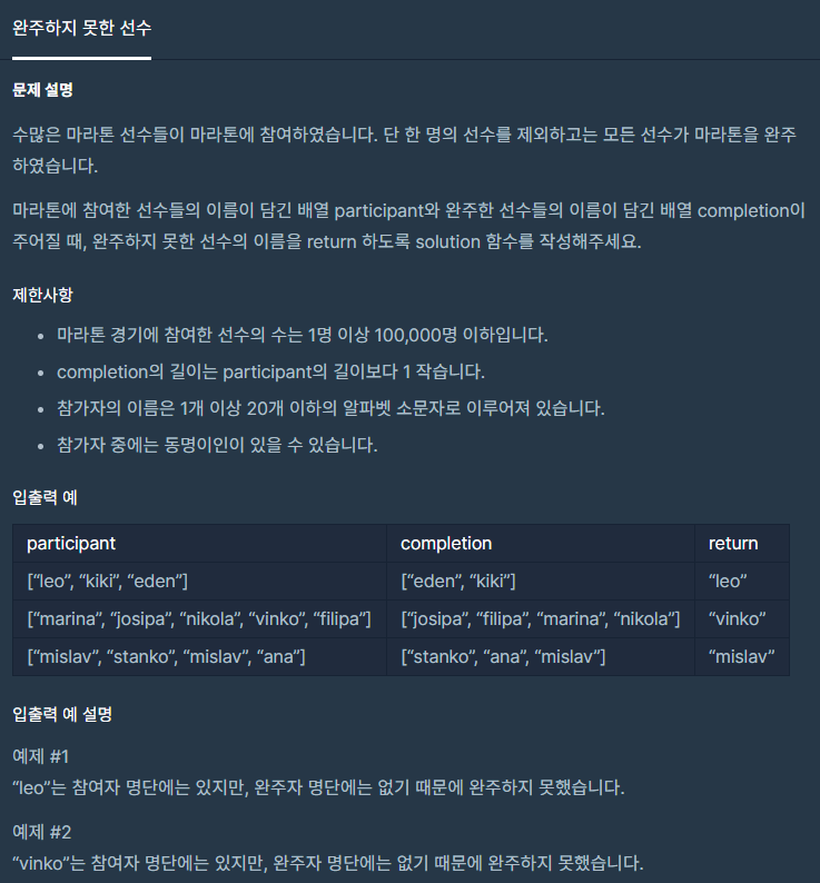 Arrays.sort(completion); // 비교를 빠르게 하기위해 둘다 정렬